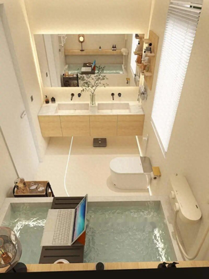 优先选「独立式浴缸」:至少四周没有卫生死角,扫地机器人可以自由通行。